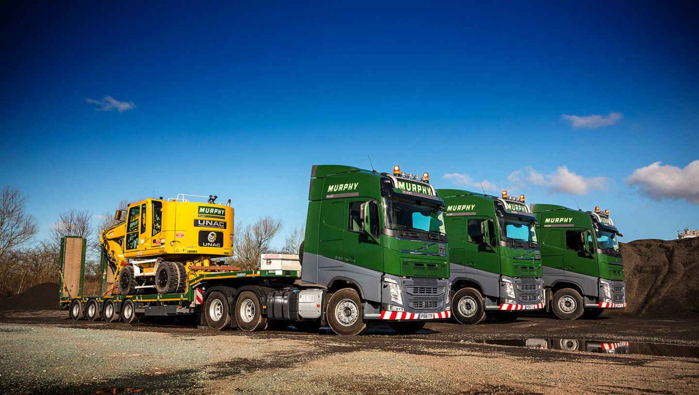 “We've had the odd Volvo in the past, but not on the scale we've purchased this time,” notes Logistics Supervisor, Michael Eden. “Personally I'm a fan because Volvo is the only manufacturer who can supply a driving tag axle, and that suits our current job perfectly.” Heavy haulage work is always easier with a double drive tractor as this configuration gives improved traction, but the downside is a dip in fuel consumption. Volvo’s Tandem Axle Lift enables operators like Murphy Plant, who often move machinery in one direction, to eliminate this issue.”