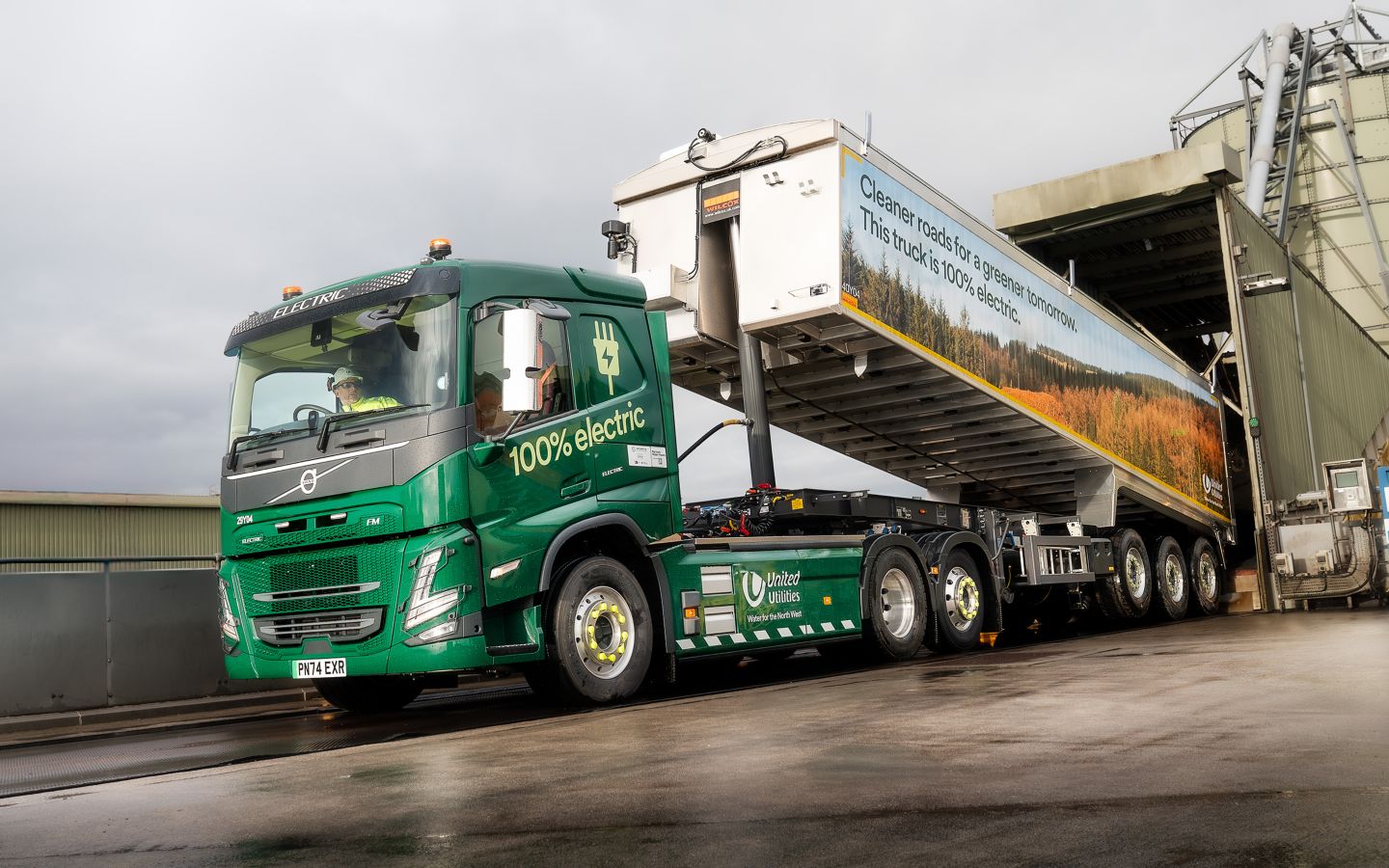 Each electric tractor unit will be paired with a bulk tipping trailer. They offer a range of approximately 300 km on a single charge, which is more than enough for United Utilities’ selected operations – collecting sludge cake from regional dewatering feeder sites and transporting the loads back to the firm’s Manchester Bioresource Centre for anaerobic digestion.